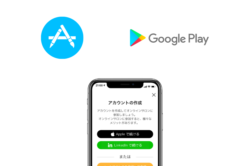 納品されたオンラインサロンを、iPhone向けのAppStoreとAndroid向けのGooglePlayStoreで公開します。