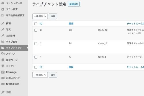 ・チャットルーム投稿じの会員への通知(オンとオフ、全員・参加者のみ、メッセージ文章を編集可能)