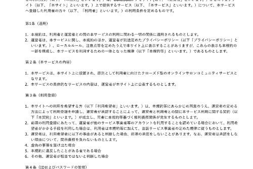 (実際のオンラインサロン会員様・運営者様からヒアリングを行い、必要とされる傾向がある条項を素案として提案しております。設置〜公開までこちらに全てお任せいただけます。)